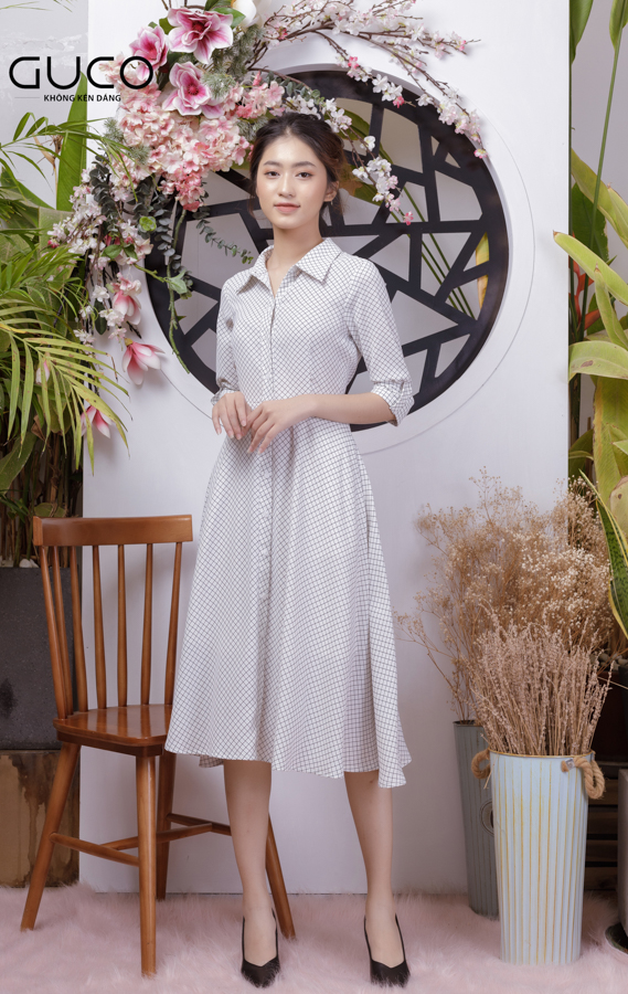 Đầm xòe caro công sở 1767 màu trắng với kiểu dáng xòe với độ dài chân váy qua gối, thiết kế và màu sắc thanh lịch, chuẩn cho cô nàng công sở hoặc đi dạo phố. Cùng với chất liệu vải lụa Hàn, may 2 lớp, co giãn nhẹ, không nhăn và thấm hút mồ hôi tốt giúp nàng tự tin, năng động cả ngày.